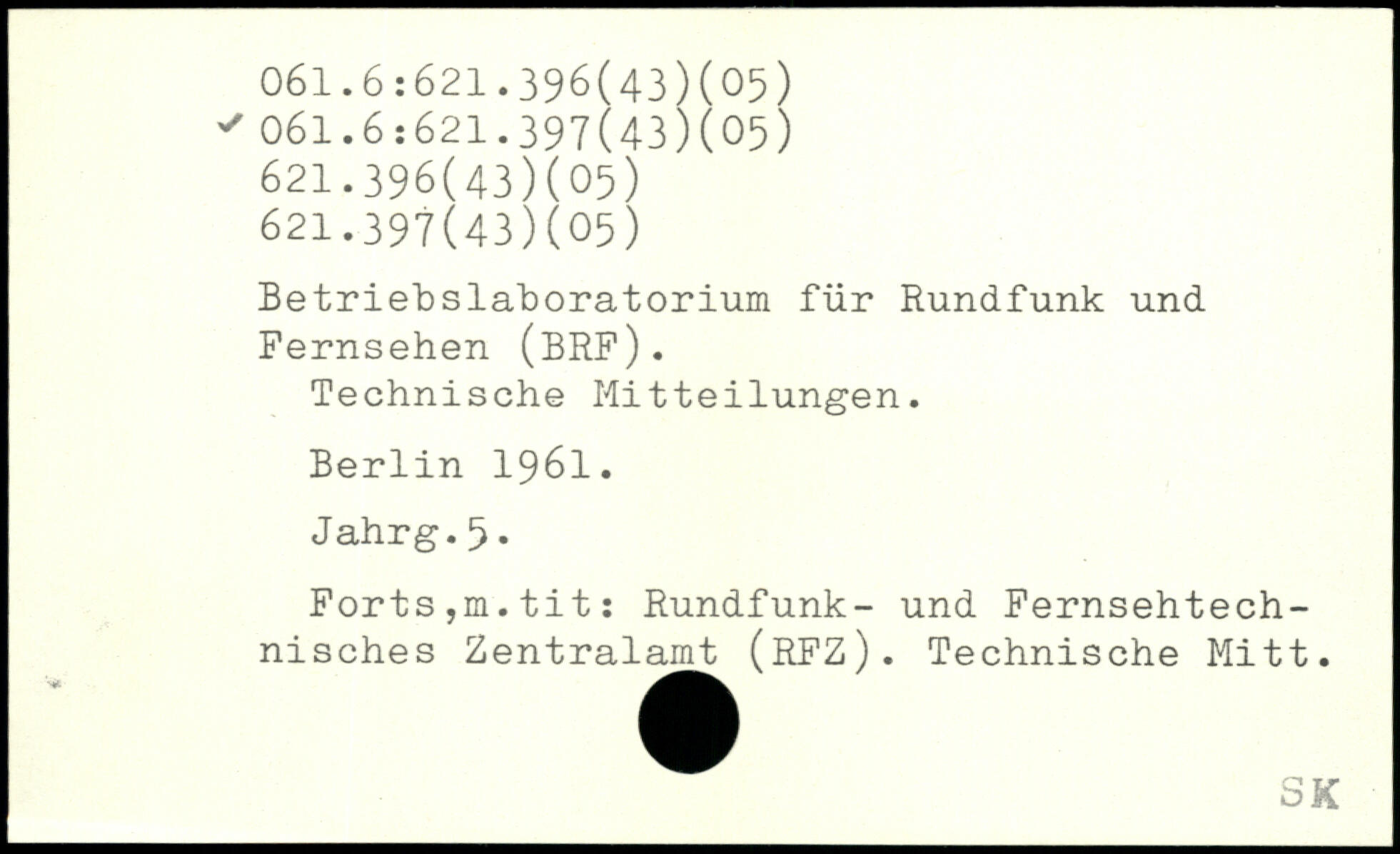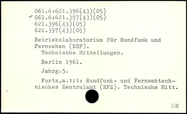 Betriehslahoratorium für Rundfunk und Fernsehen (BRF). Technische Mitteilungen.