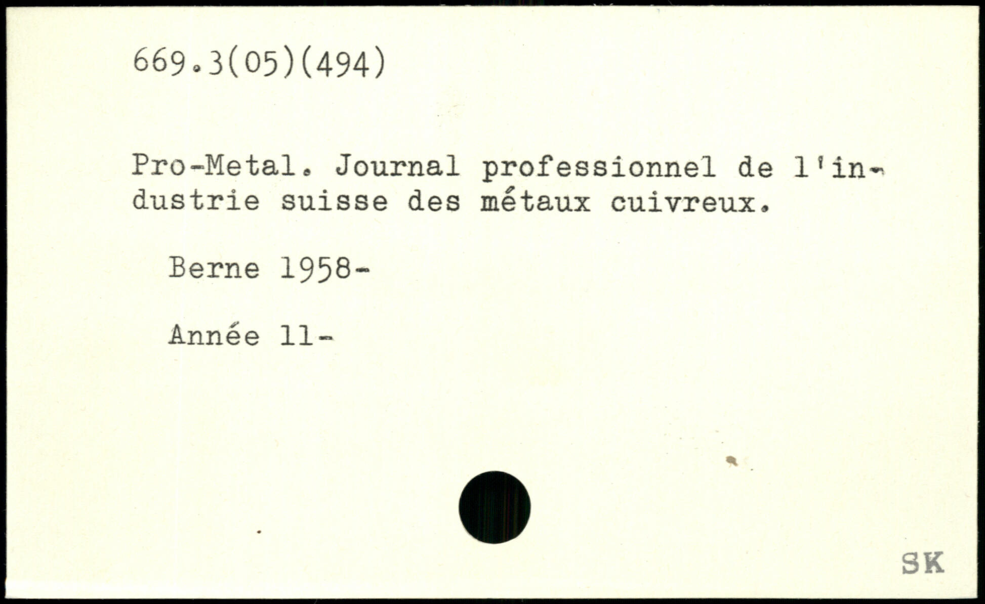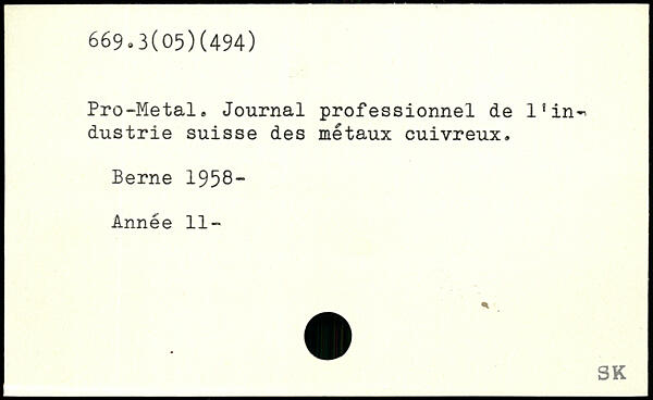 Pro-Metal. Journal professionnel de 1!in^ dustrie suisse des métaux cuivreux. Berne 1958- Année 11-