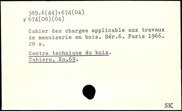 Cahier des charges applicable aux travaux de menuiserie en bois. Ser.6. Paris lÿ66.