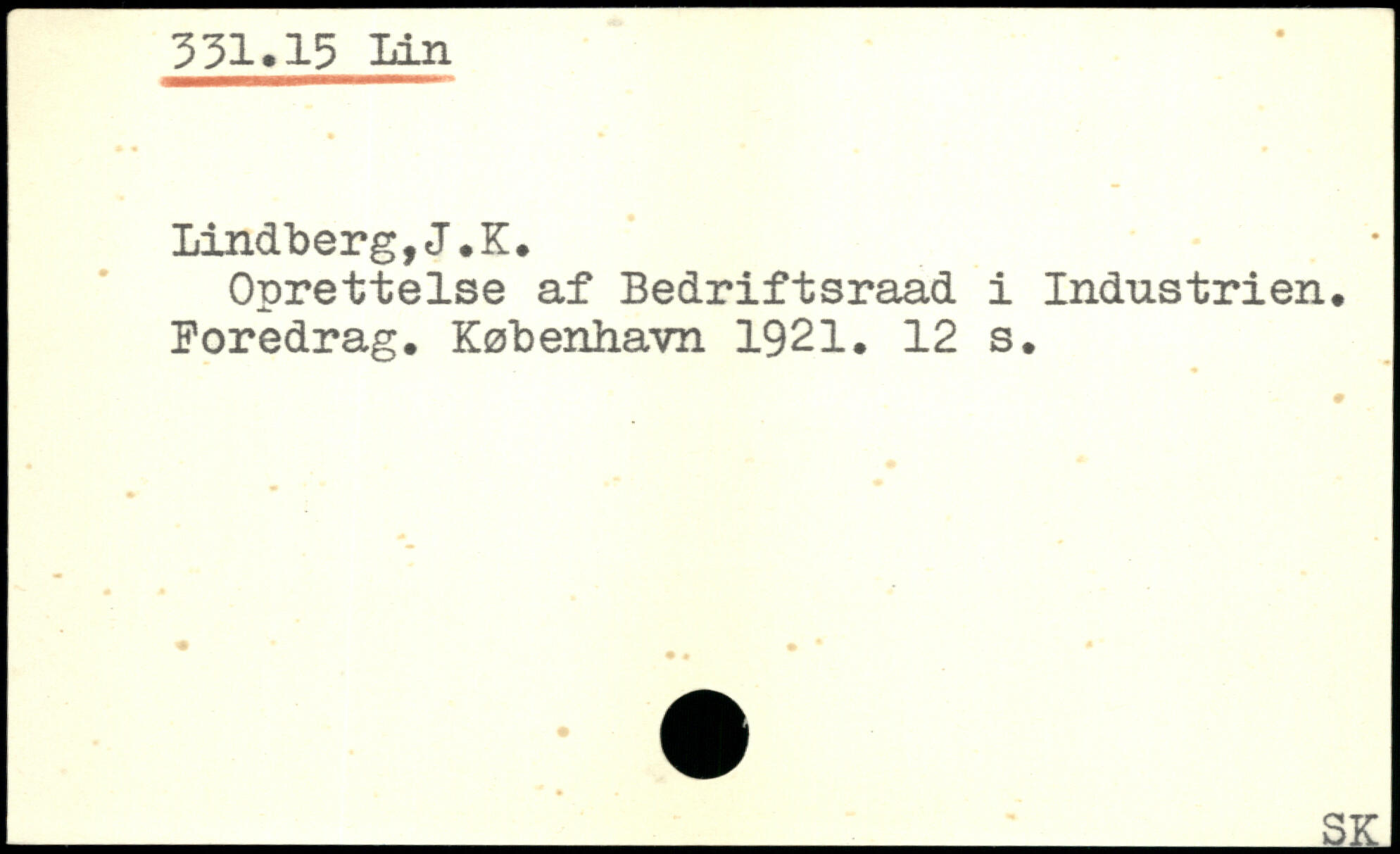 Oprettelse af Bedriftsraad i Industrien. Poredrag.