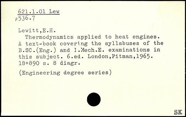 Thermodynamics applied to heat engines. A text-^book covering the syllabuses of the B.SC.(Eng.) and I.Mech.E. examinations in this subject.