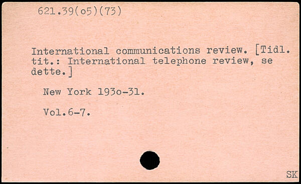 International communications review. [Tidl. tit.: International telephone review, se dette.] New York 193o-31.
