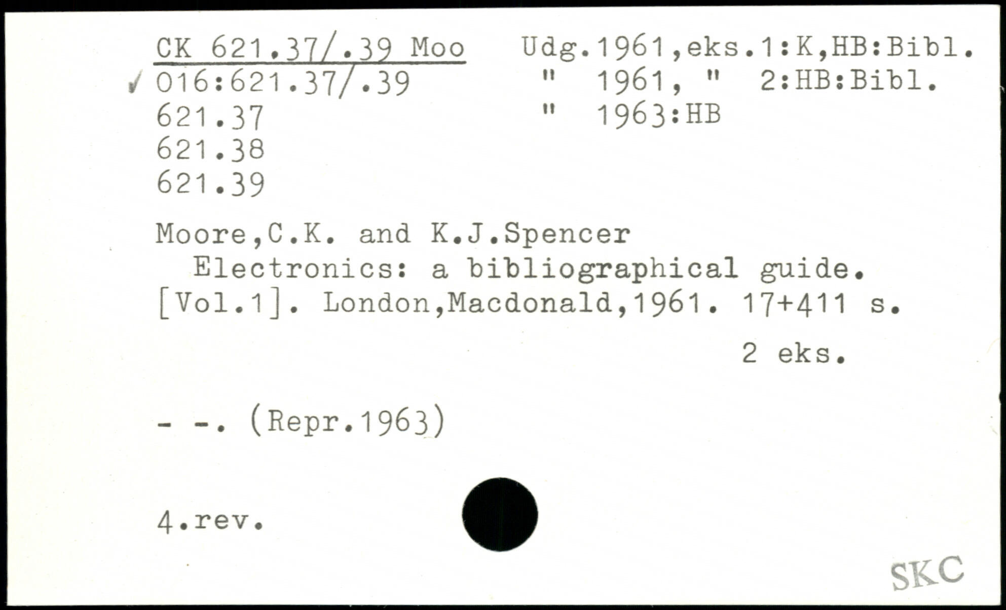 Electronics: a bibliographical guide. [V0I.I].