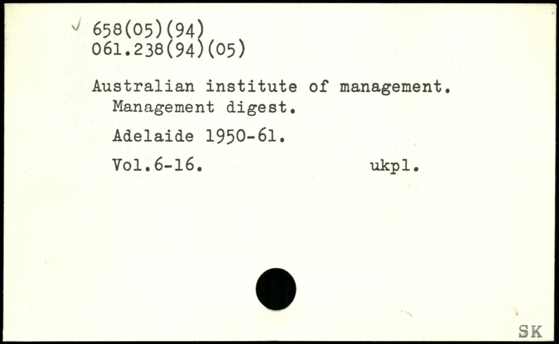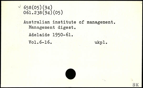 Australian institute of management. Management digest. Adelaide 1950-61. V0I.6-I6. ukpl.