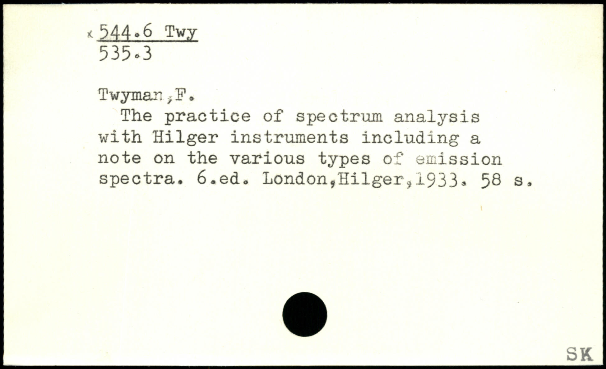 Twyman fF, The practice of spectrum analysis with Hilger instruments including a note on the various types of emission spectra.