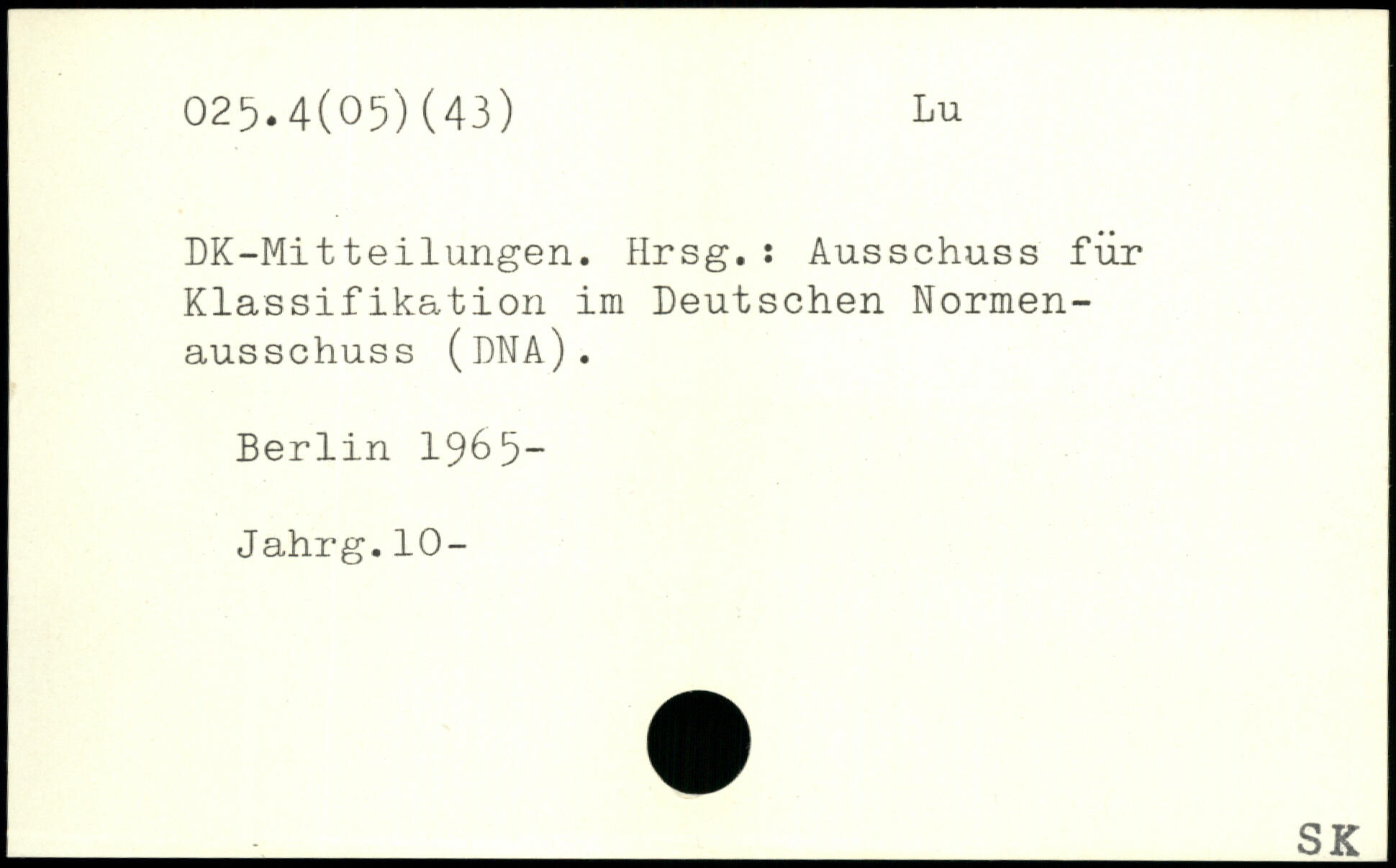 DK-Mitteilungen. Hrsg.: Ausschuss für Klassifikation im Deutschen Normenausschuss (dna).