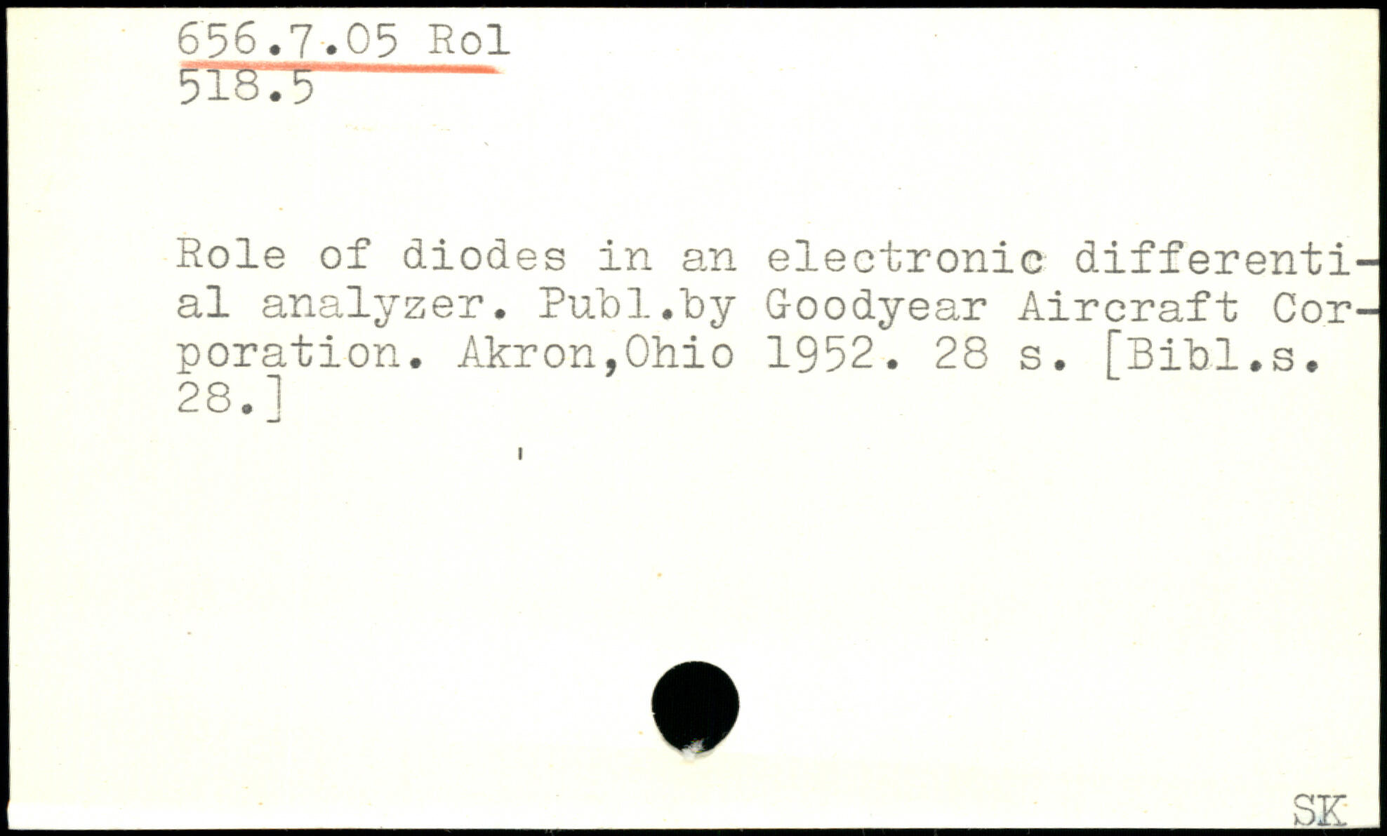 5TST5- Role of diodes in an electronic differential analyzer. Pull.by Goodyear Aircraft Corporation. Akron,Ohio 1952.