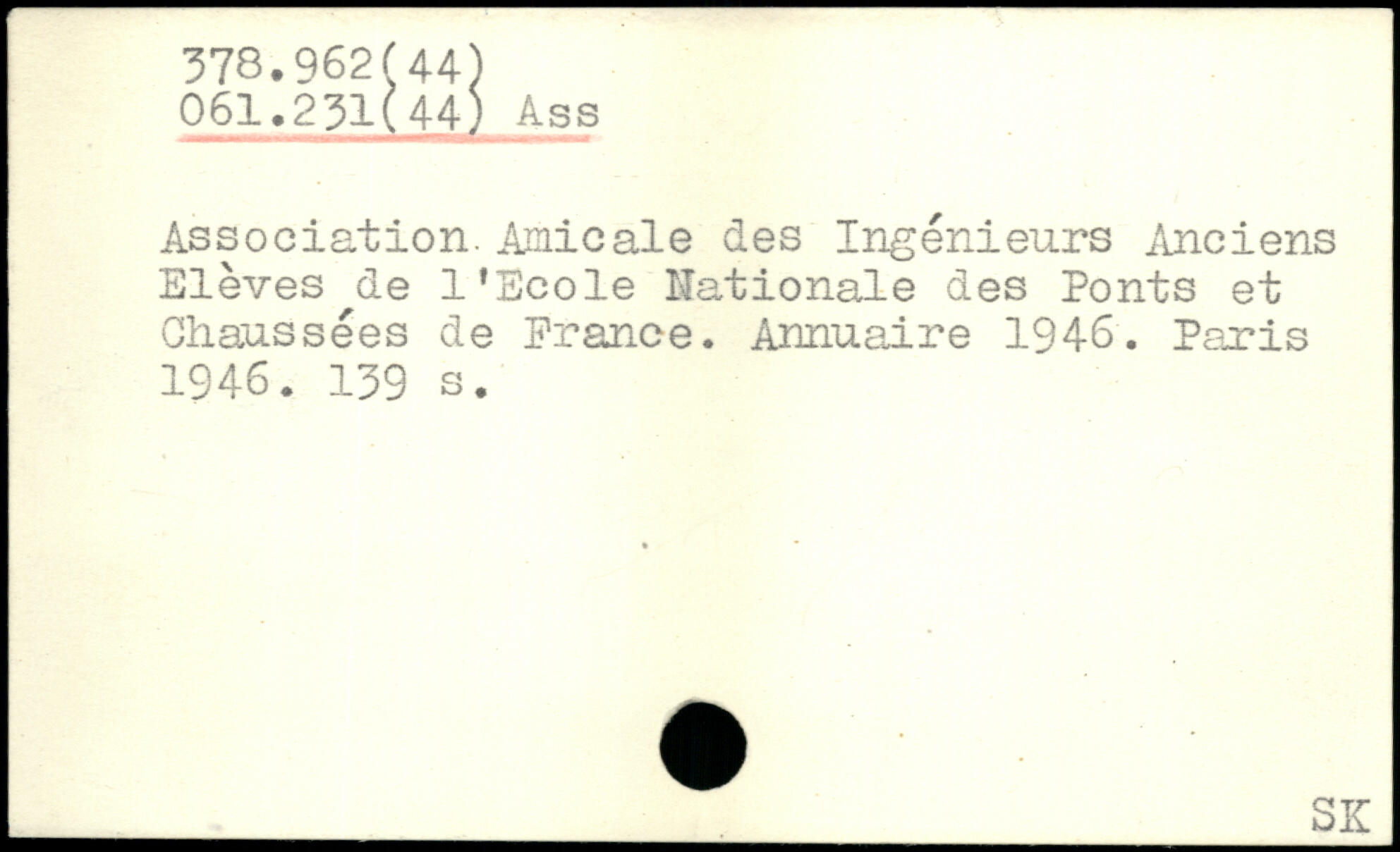 Association. Aaioale des Ingénieurs Anciens Elèves de l'Ecole Nationale des Ponts et Chaussées de France. Annuaire 1946.