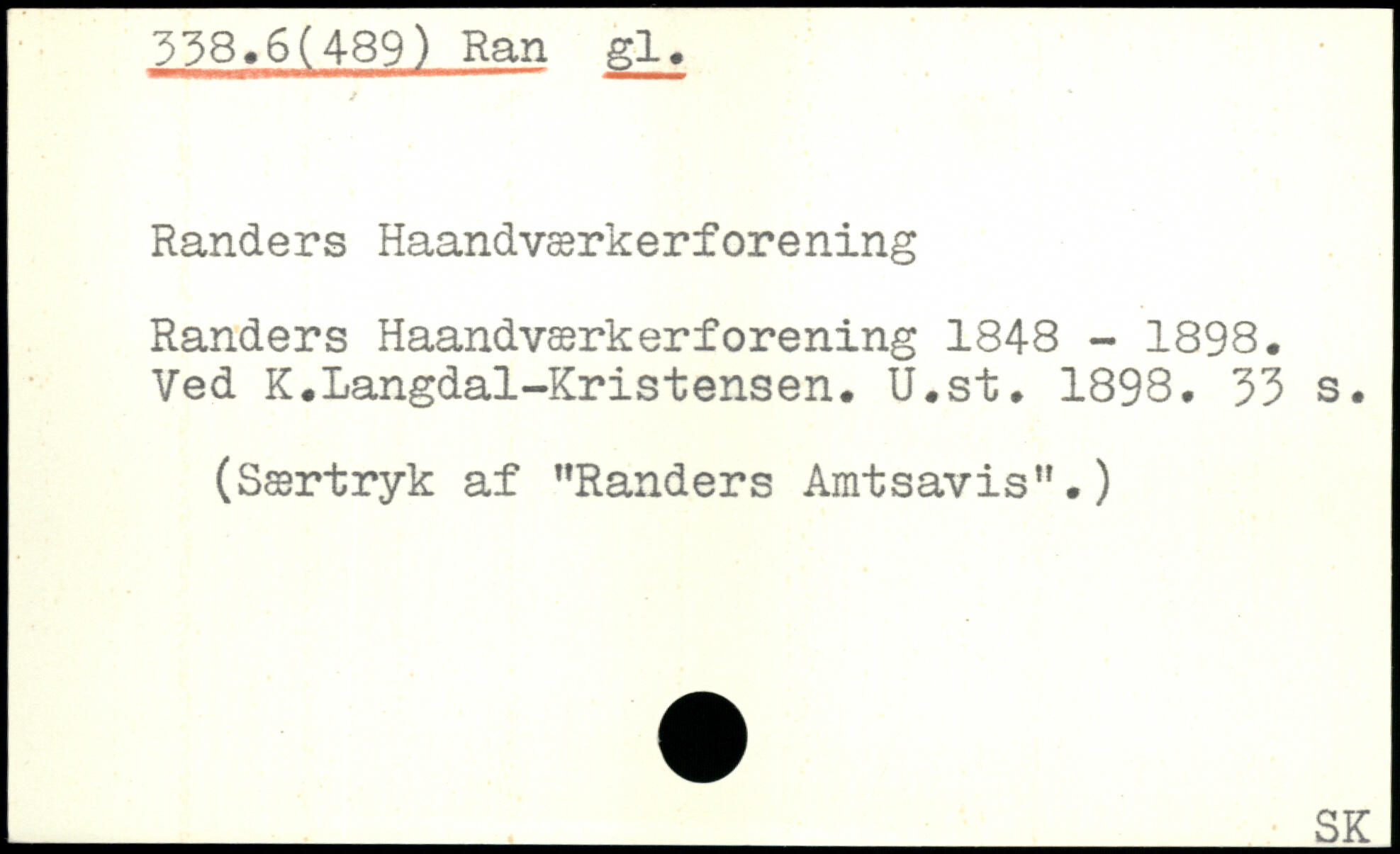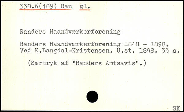 Randers Haandværkerforening Randers Haandværkerforening 1848 - 1898. Ved K.Langdal-Kristensen. U.st. 1898.