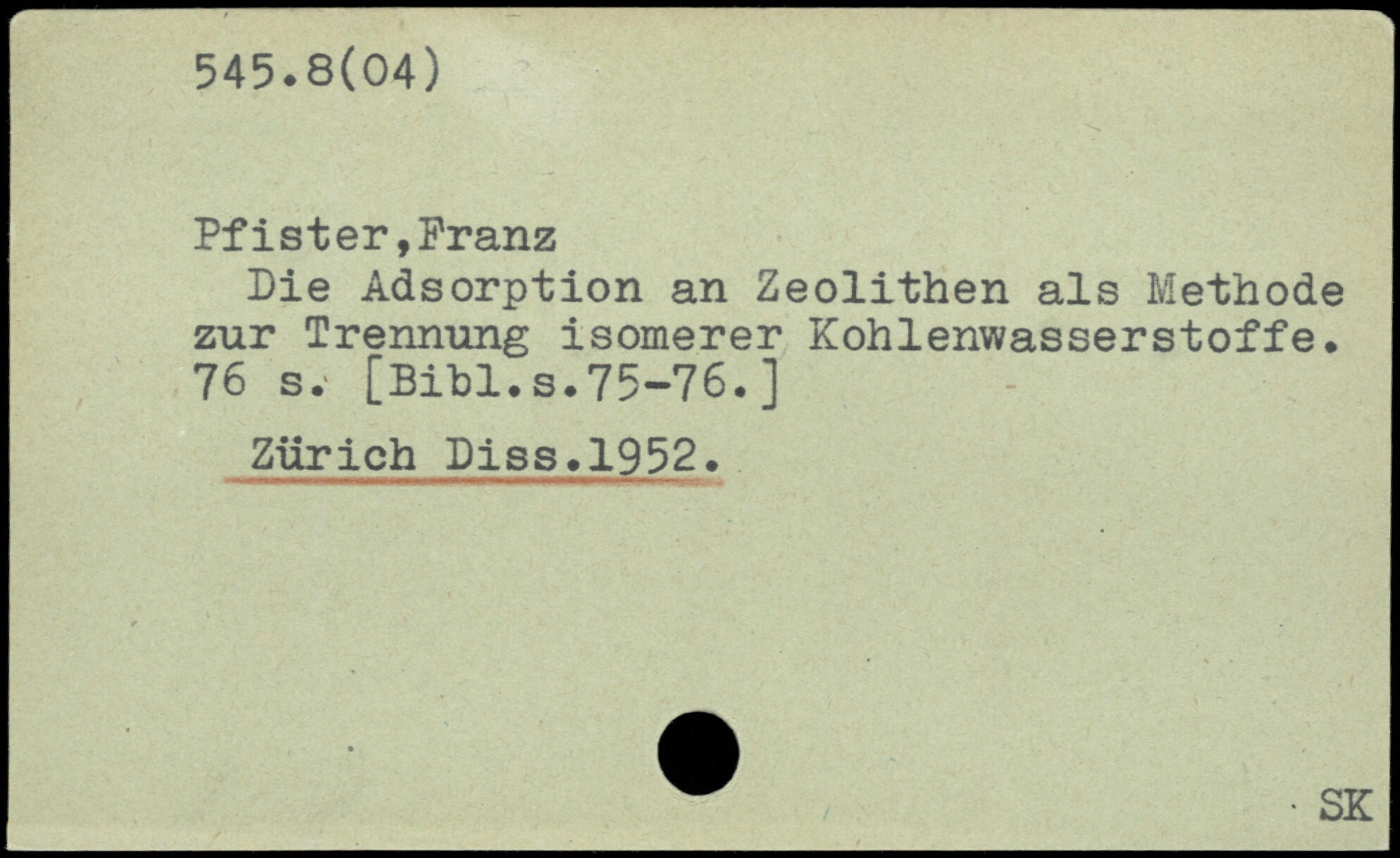 Pfister,Franz Die Adsorption an Zeolithen als Methode zur Trennung isomerer Kohlenwasserstoffe