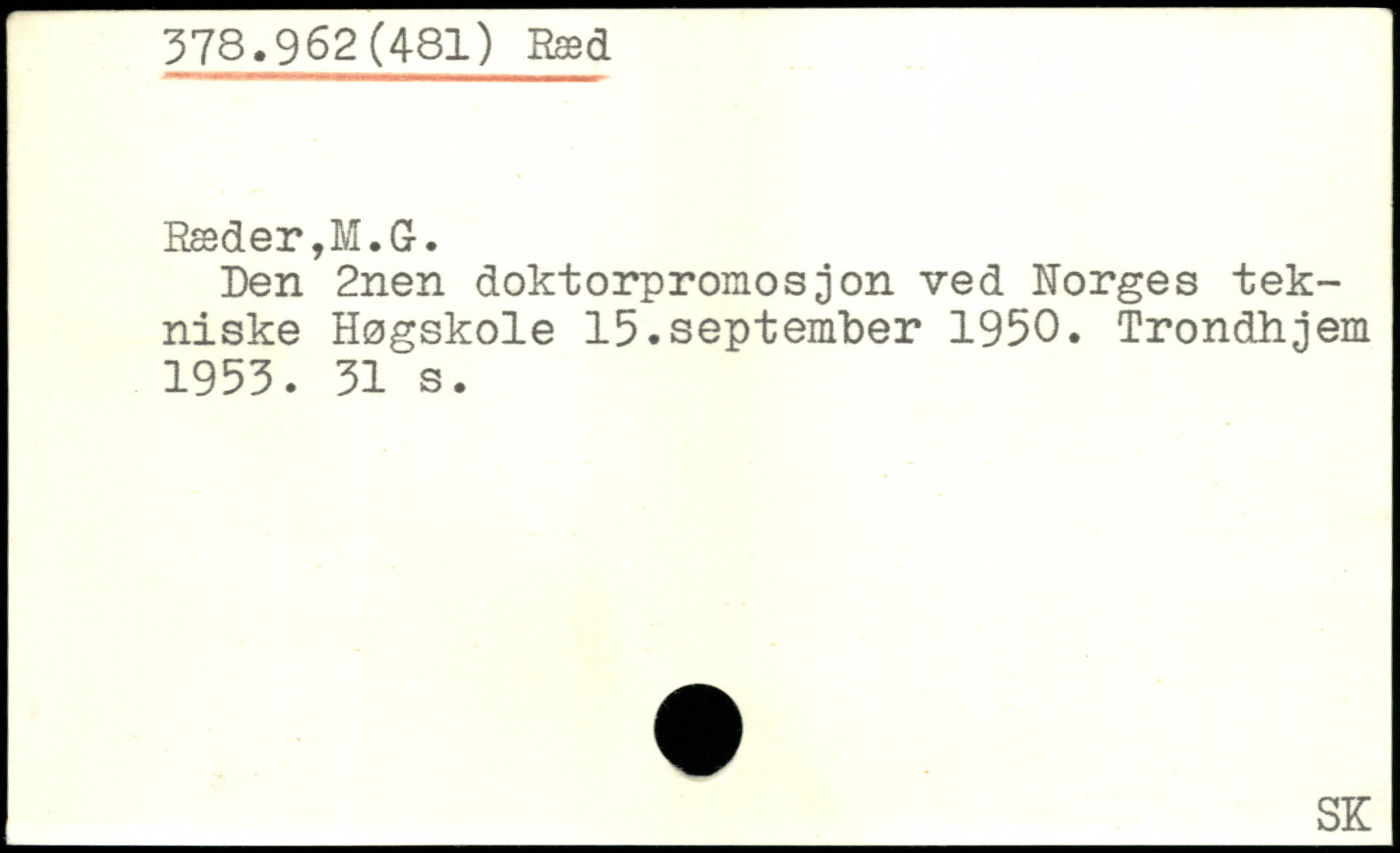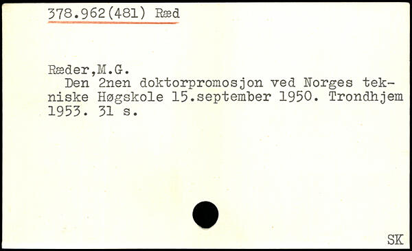 Den 2nen doktorpromosjon ved Norges tekniske Høgskole 15.september 1950. Trondhjem 1953.