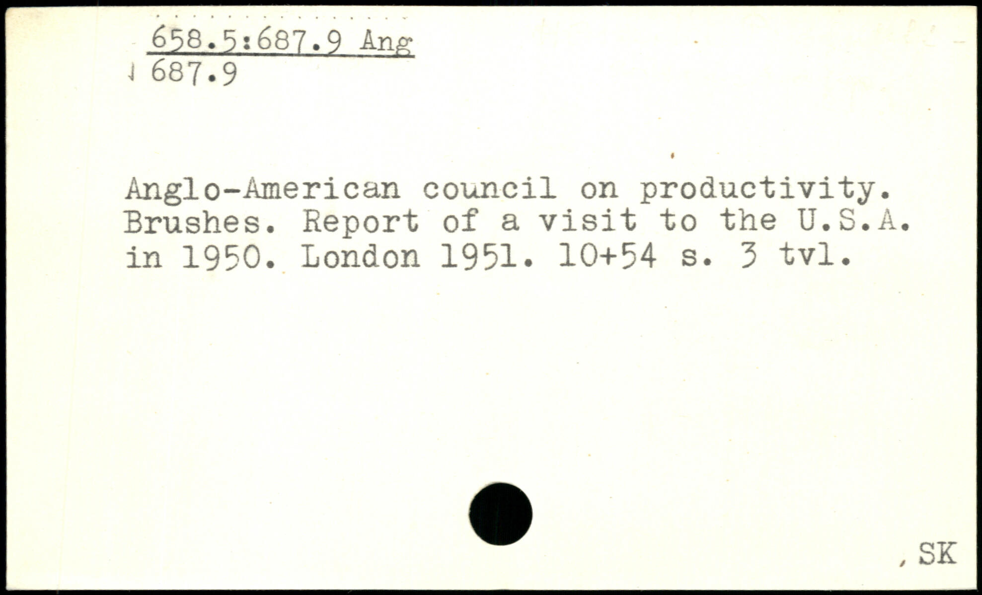 Anglo-American council on productivity. Brushes. Report of a visit to the U.S.A. in 1950.