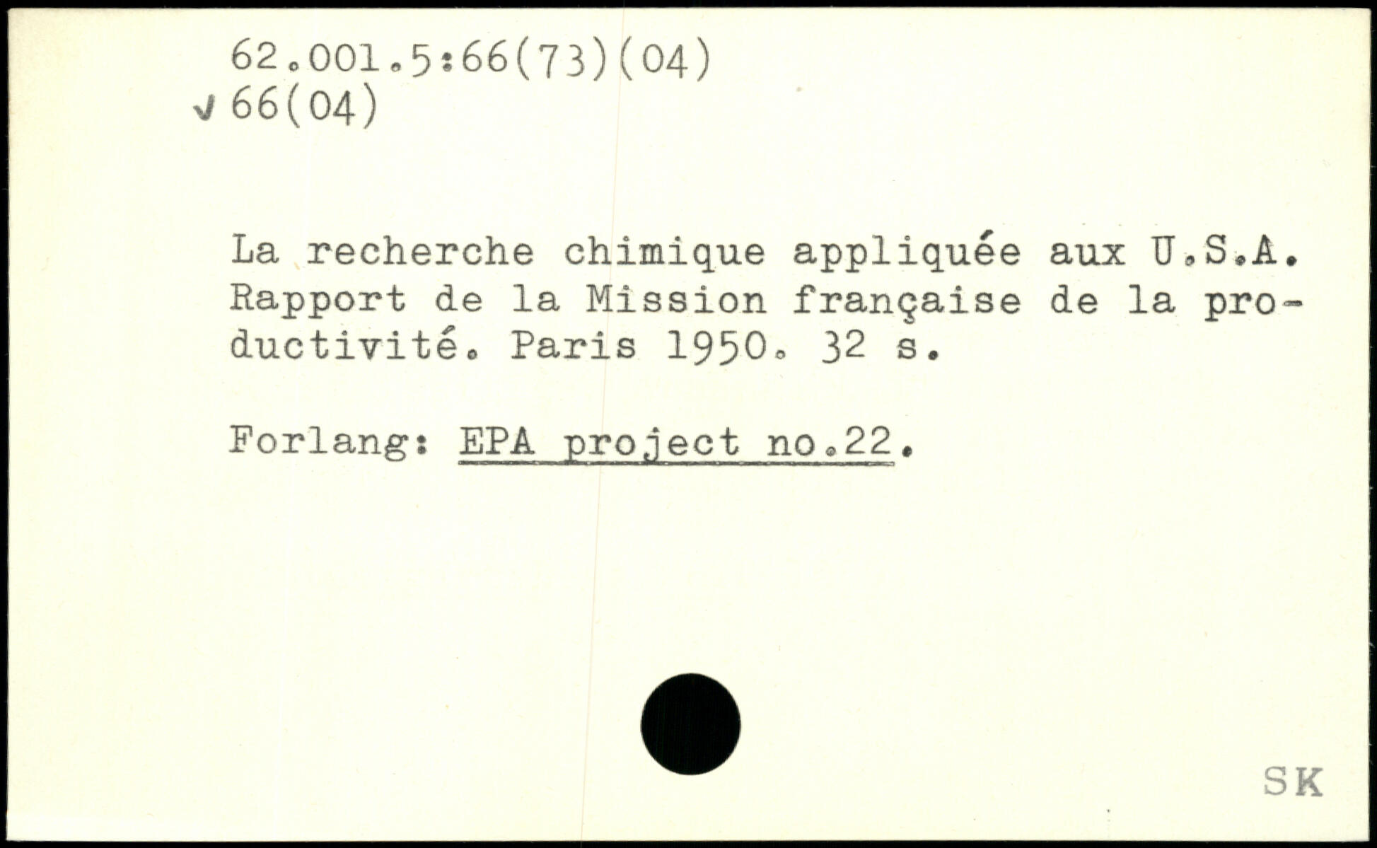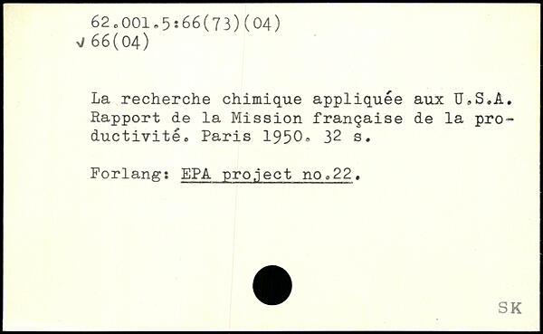 La recherche chimique appliquée aux U.S.A. Rapport de la Mission française de la productivité.