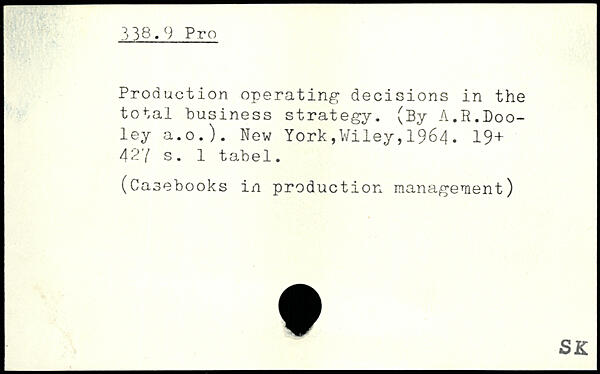 Production operating decisions in the total business strategy. (By A.R.Dooley a. o.).