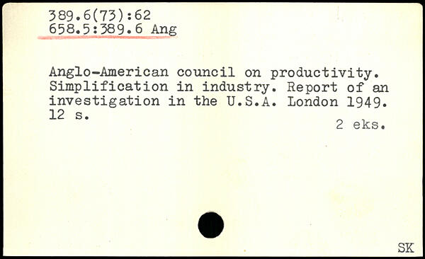 Anglo-American council on productivity. Simplification in industry. Report of an investigation in the U.S.A.