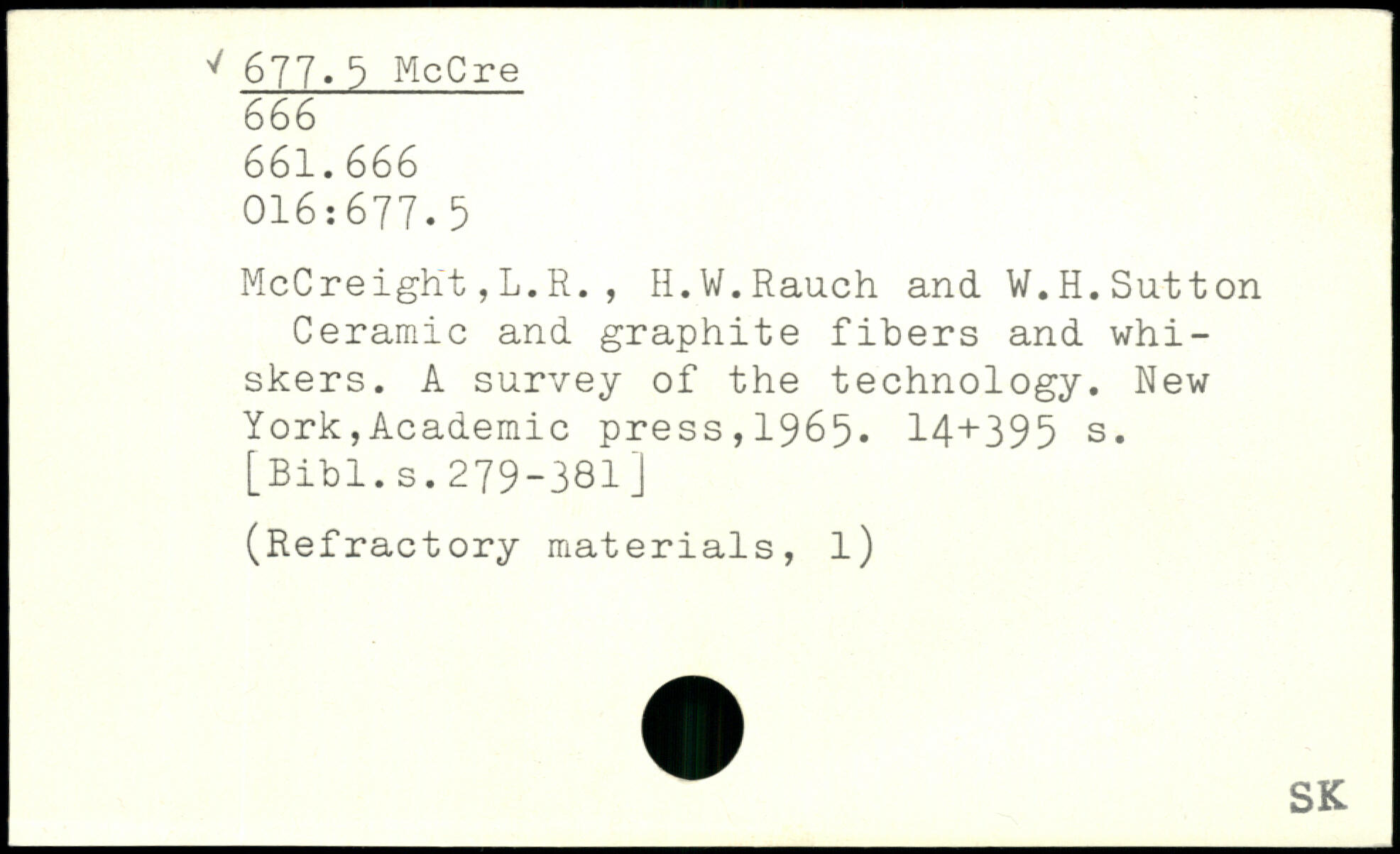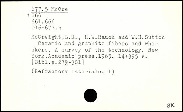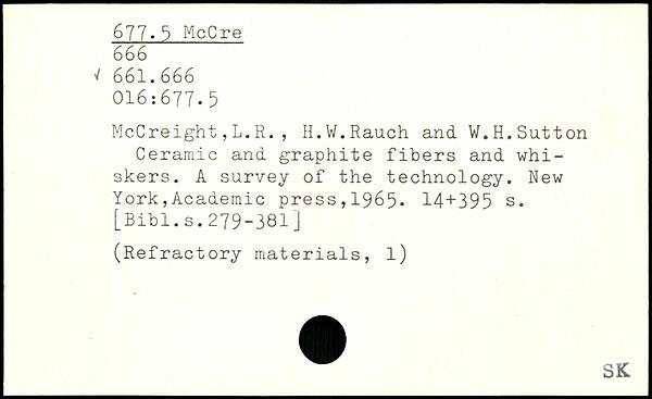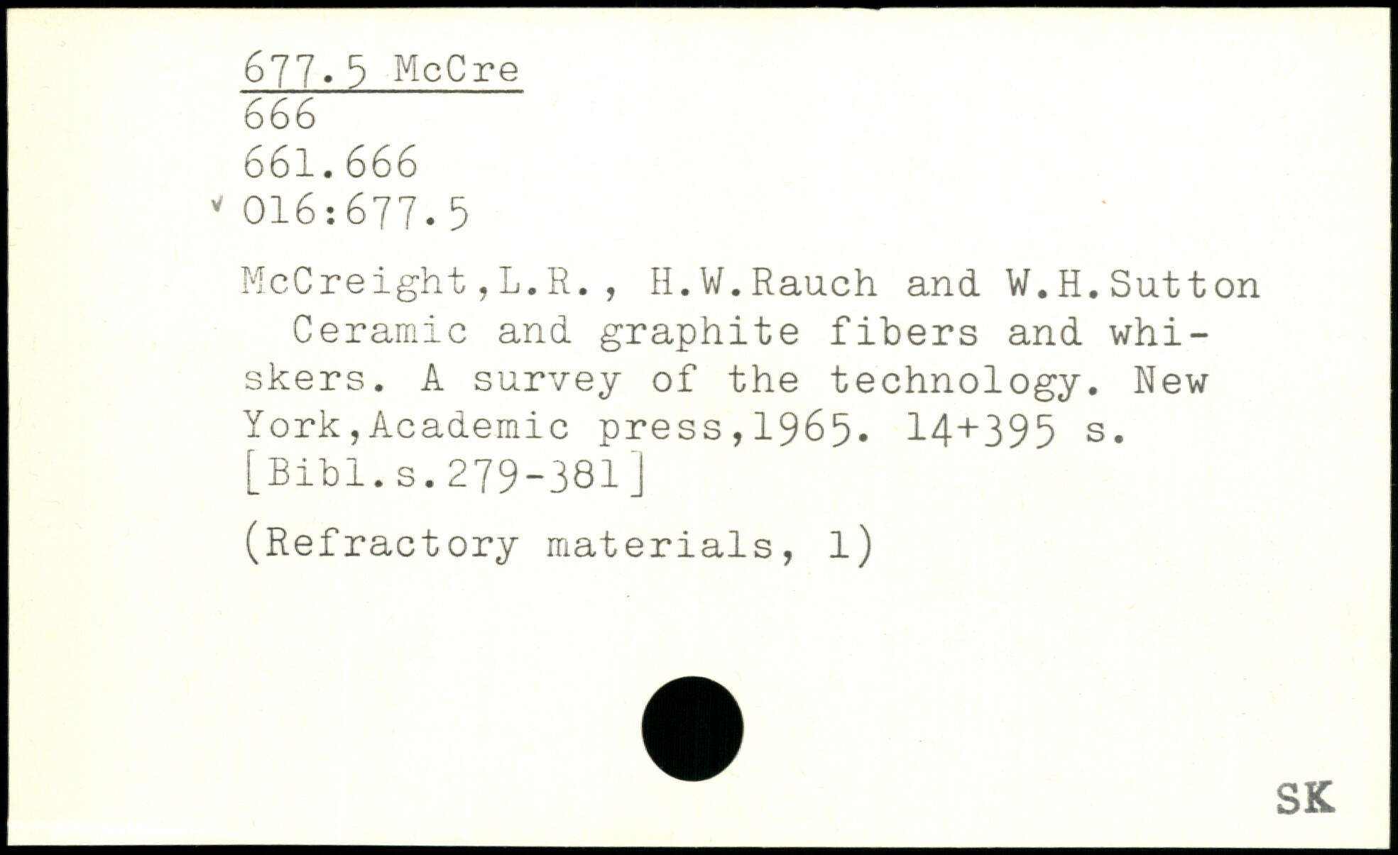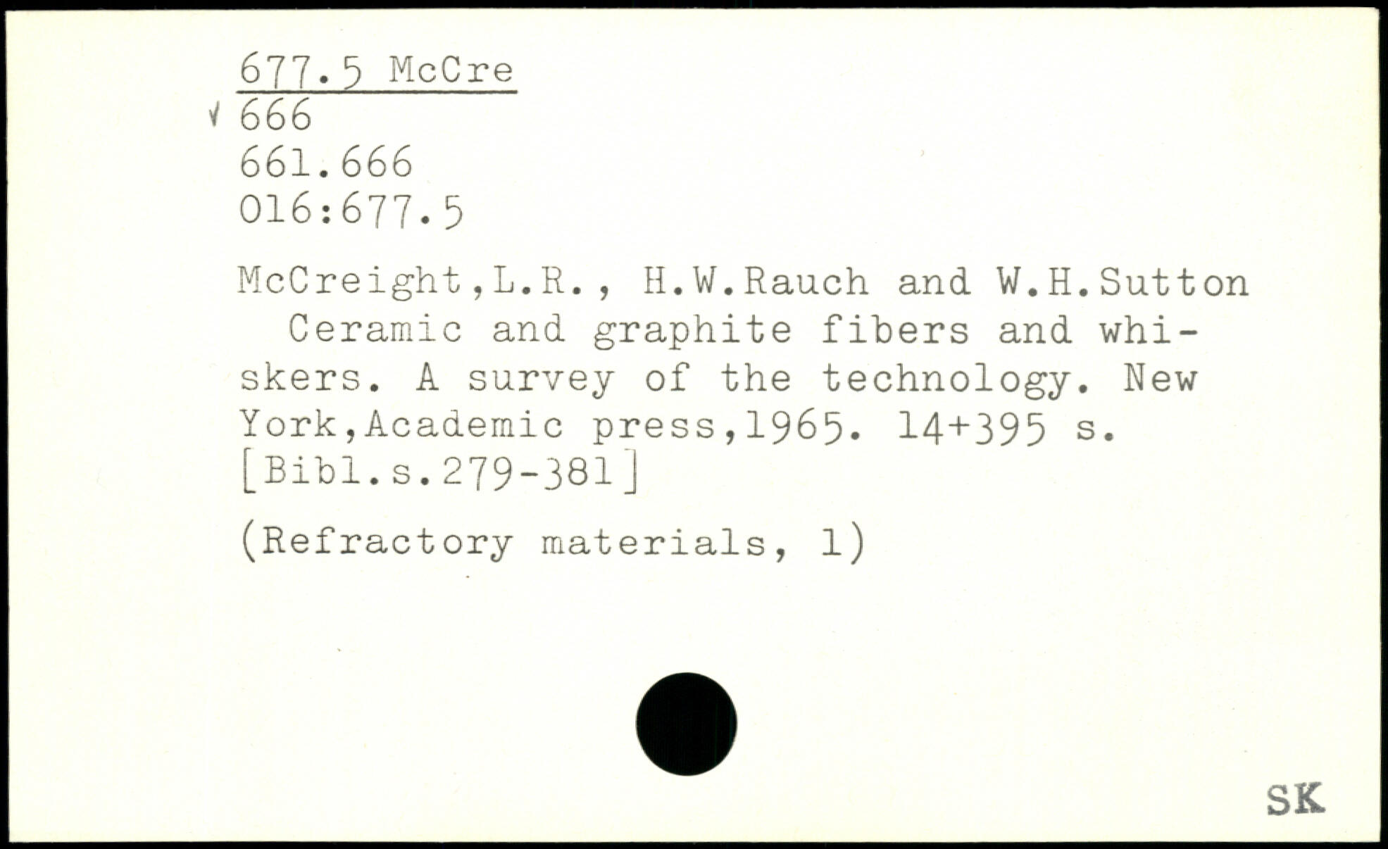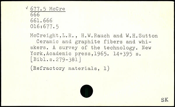 McCreight,L.R., H.W.Rauch and W.H. Sutton Ceramic and graphite fibers and whiskers. A survey of the technology.