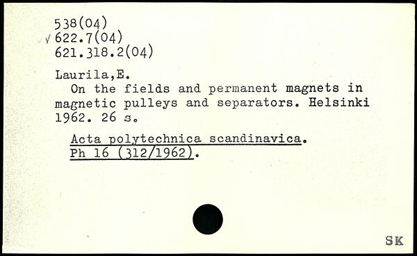 On the fields and permanent magnets in magnetic pulleys and separators.