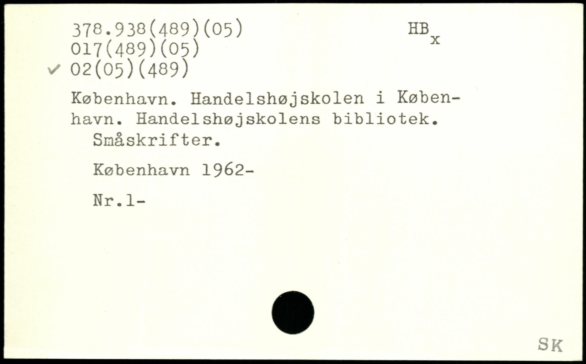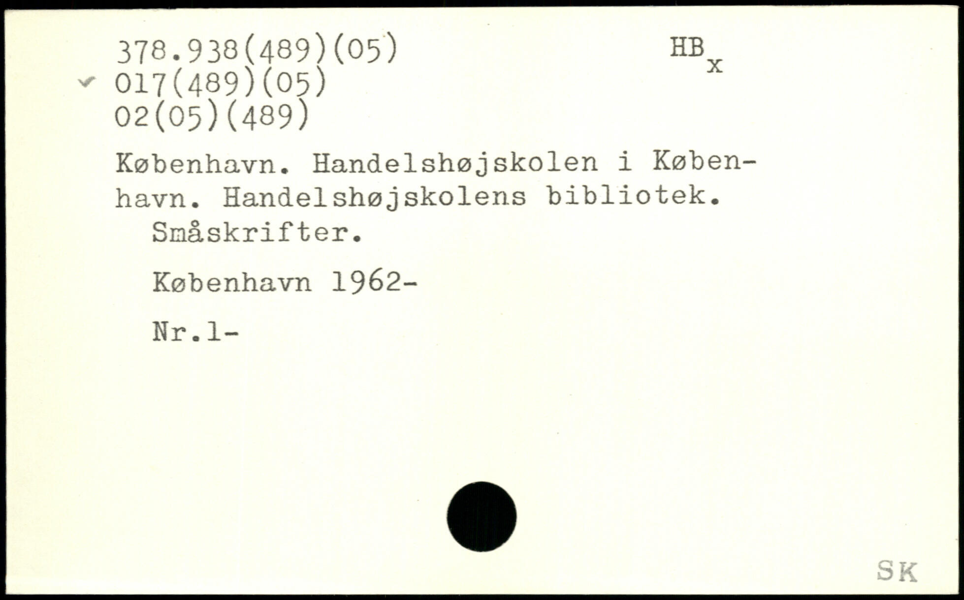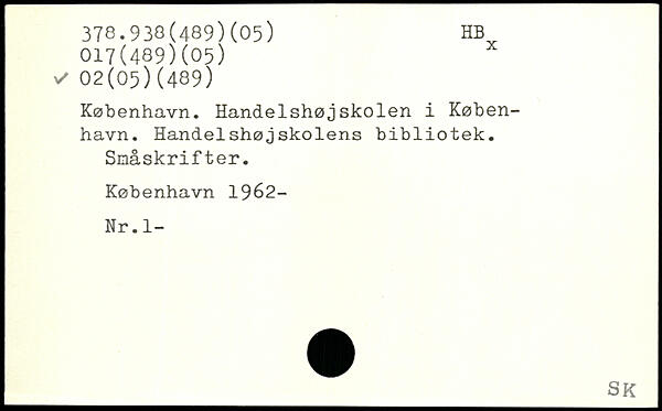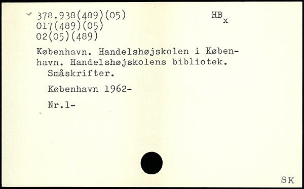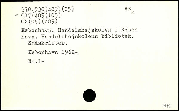 København. Handelshøjskolen i København. Handelshøjskolens bibliotek. Småskrifter.