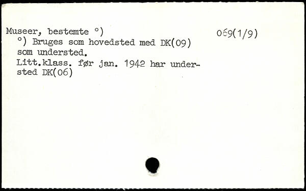Museer, bestemte .) Oe9(1/9) .) Bruges som hovedsted med DK(09) som understed. Litt.klass, før jan. 194-2 har understed dk(06)