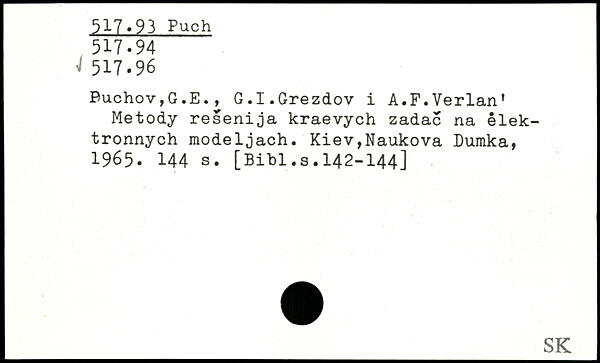 Buehov,G.E., G.I.Grezdov i A.F.Verlan' Metody resenija kraevych zadac na êlek-tronnych modeljach.