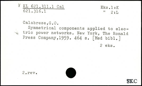 Symmetrical components applied to elec-tric power networks.