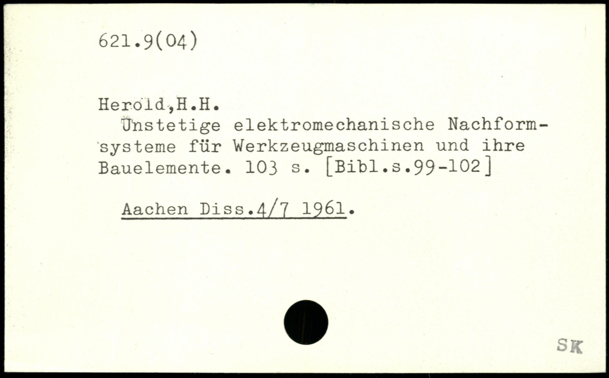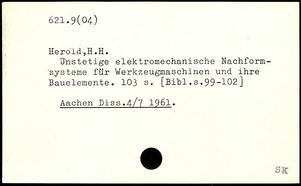 Unstetige elektromechanische Nachformsysteme für Werkzeugmaschinen und ihre Bauelemente.