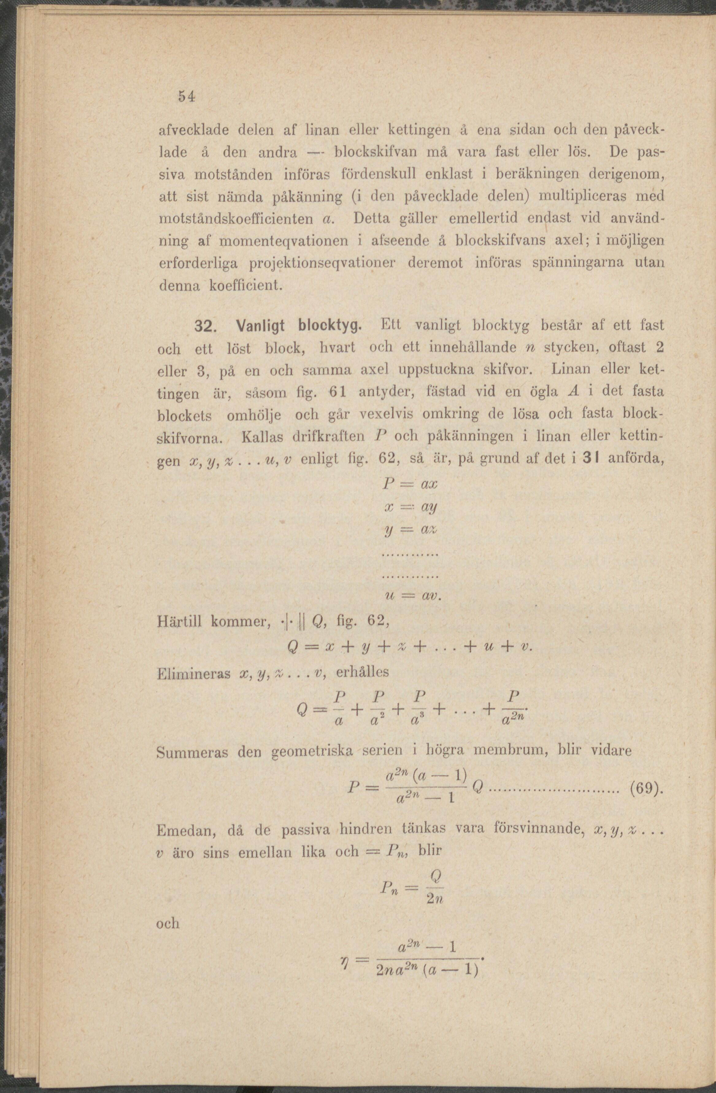 ning af momenteqvationen i afseende å blockskifvans axel; i möjligen