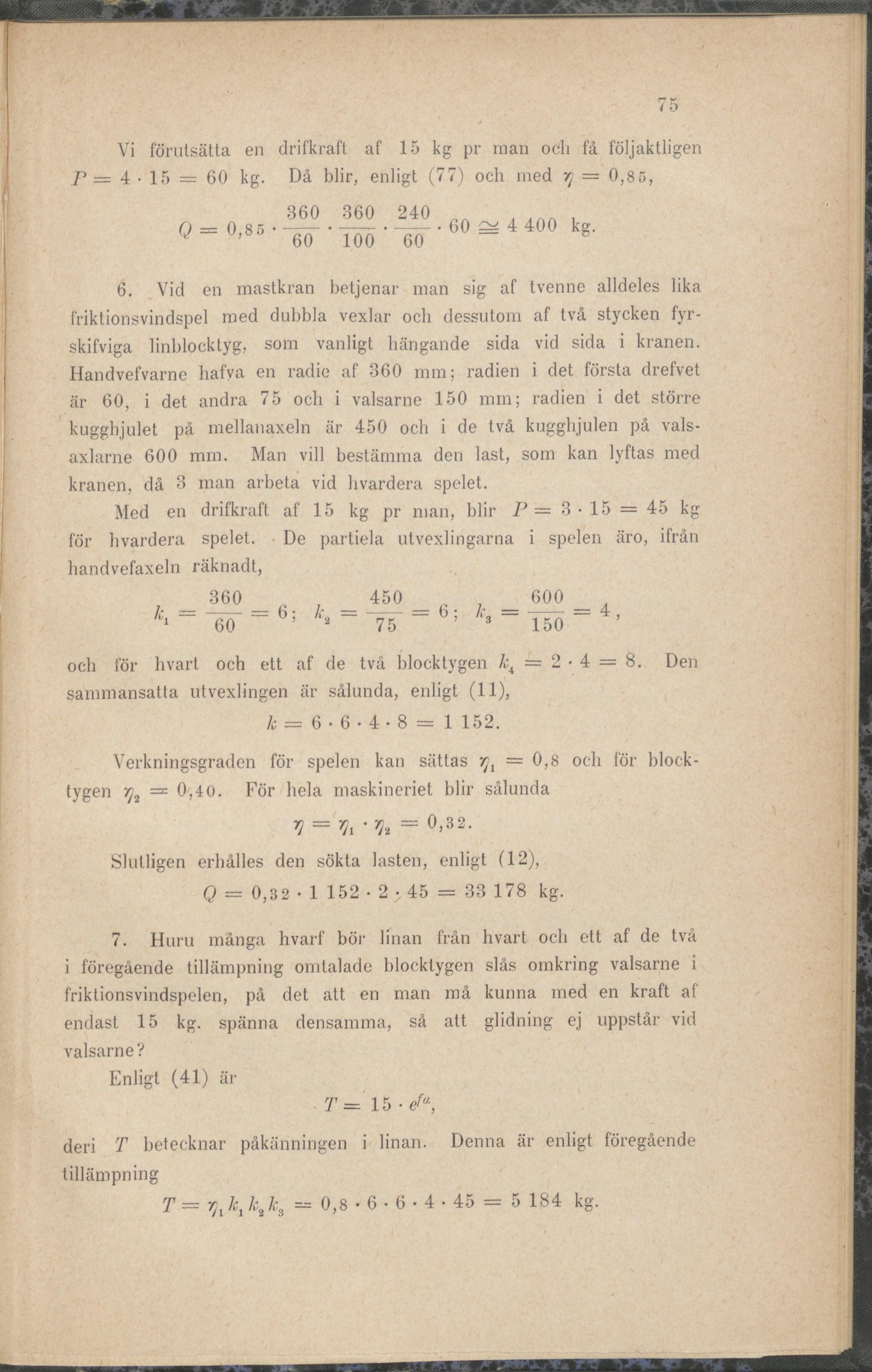 p = 4 . 15 = 60 kg. Då biir, enligt (77) och med = 0,85,