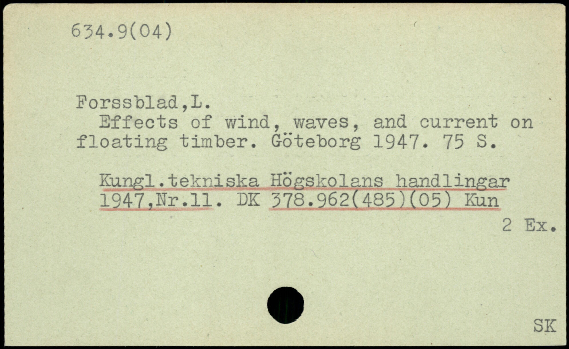 Effects of v/ind, waves, and current on floating timber. Göteborg 1947.