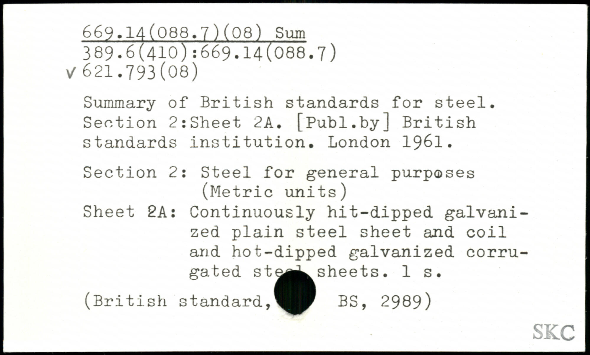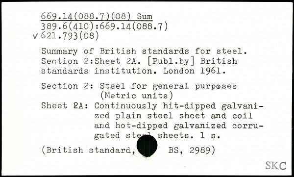 Summary of British standards for steel. Section 2:Sheet 2A.