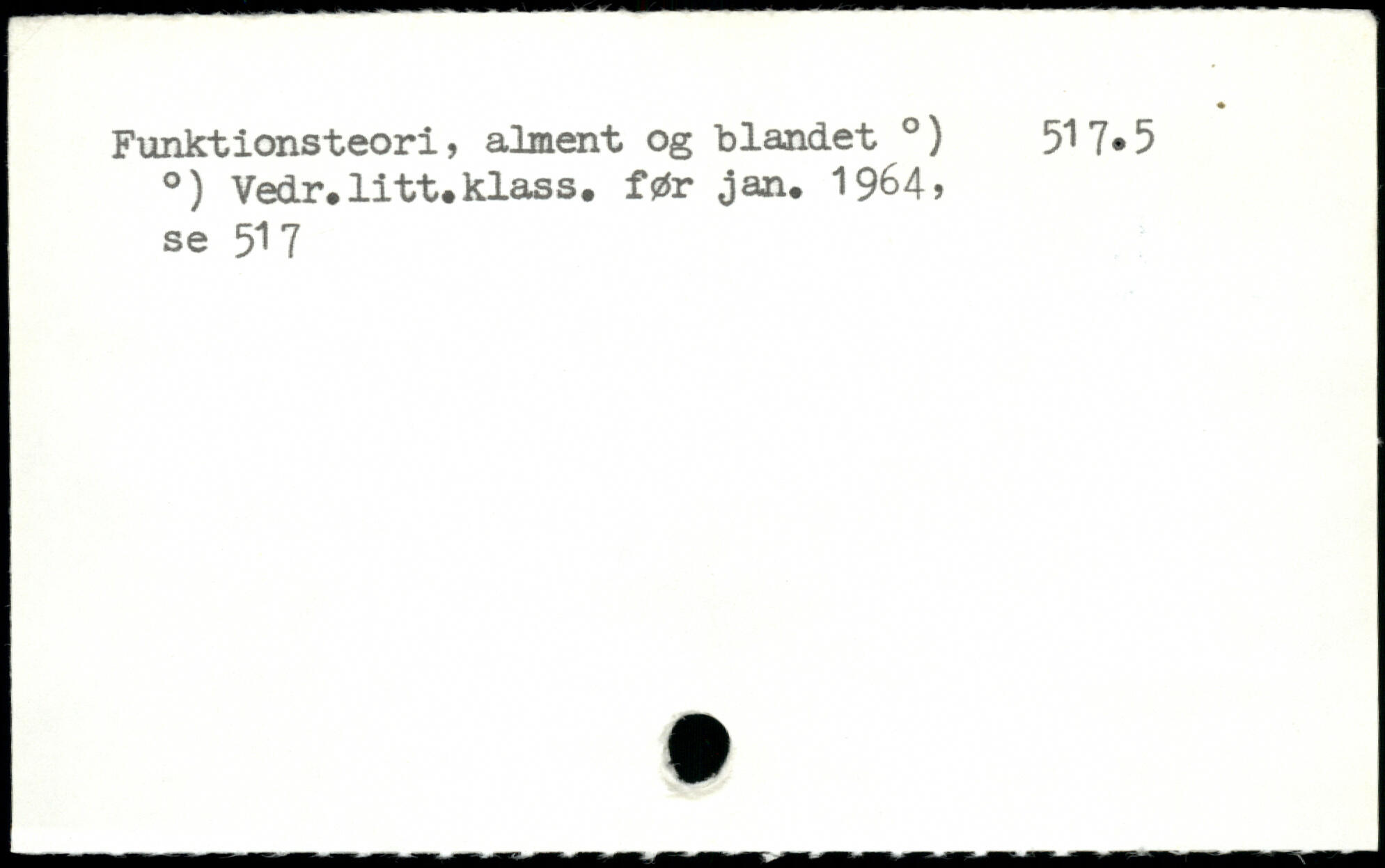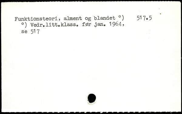 Funktionsteori, alment og blandet .) 517,5 .) Vedr.litt.klass. før jan. 1964, se 517