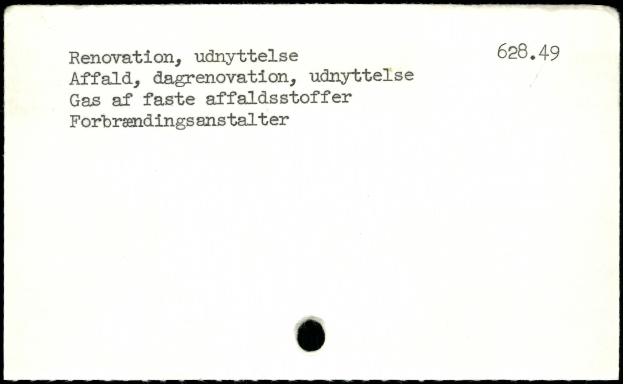 Renovation, udnyttelse 628.49 Affald, dagrenovation, udnyttelse Gas af faste affaldsstoffer Forbrændings anstalter