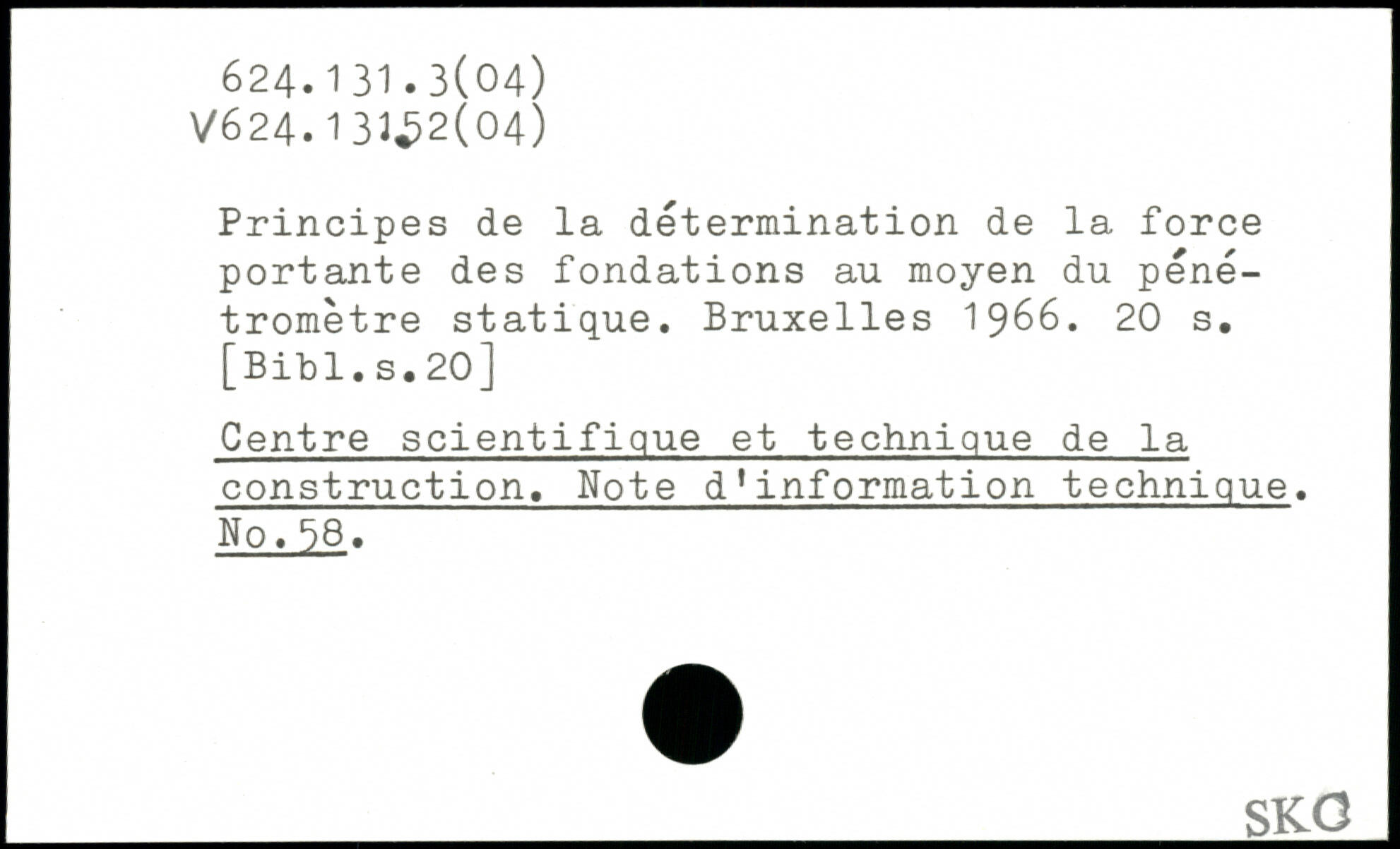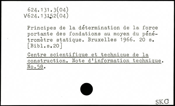 Principes de la détermination de la force portante des fondations au moyen du péné-tromètre statique.