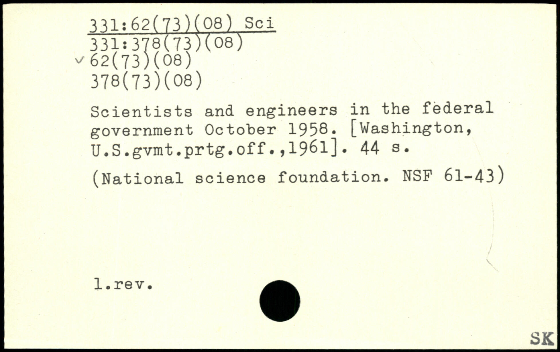 Scientists and engineers in the federal government October 1958