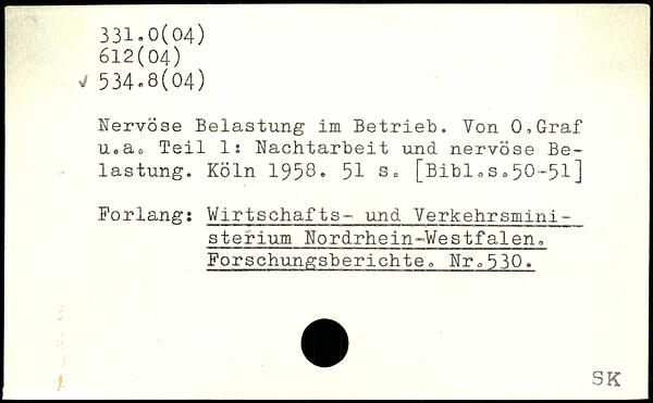 Nervöse Belastung im Betrieb. Von O.Graf u.a. Teil 1s Nachtarbeit und nervöse Belastung.