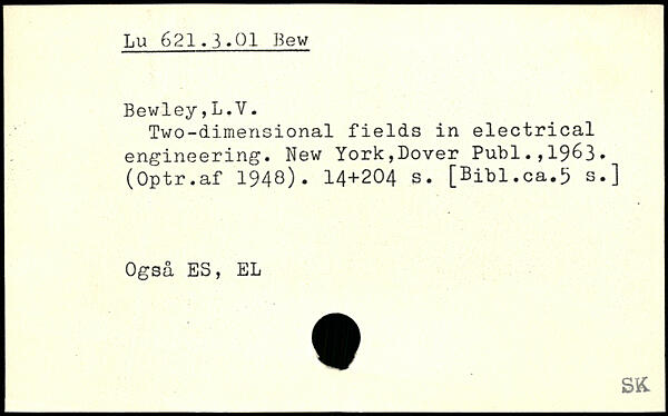 Two-dimensional fields in electrical engineering.