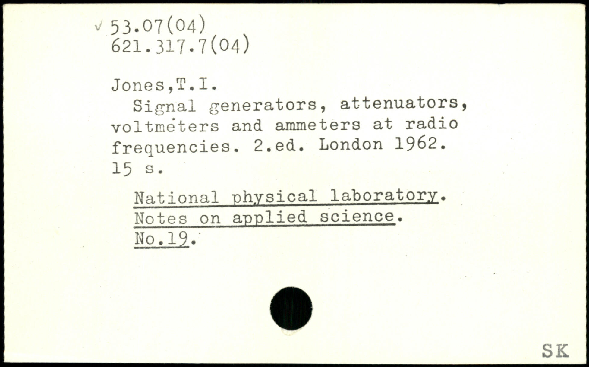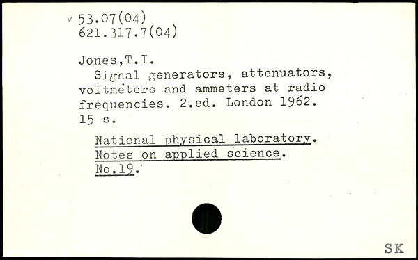 Signal generators, attenuators, voltme'ters and ammeters at radio frequencies.