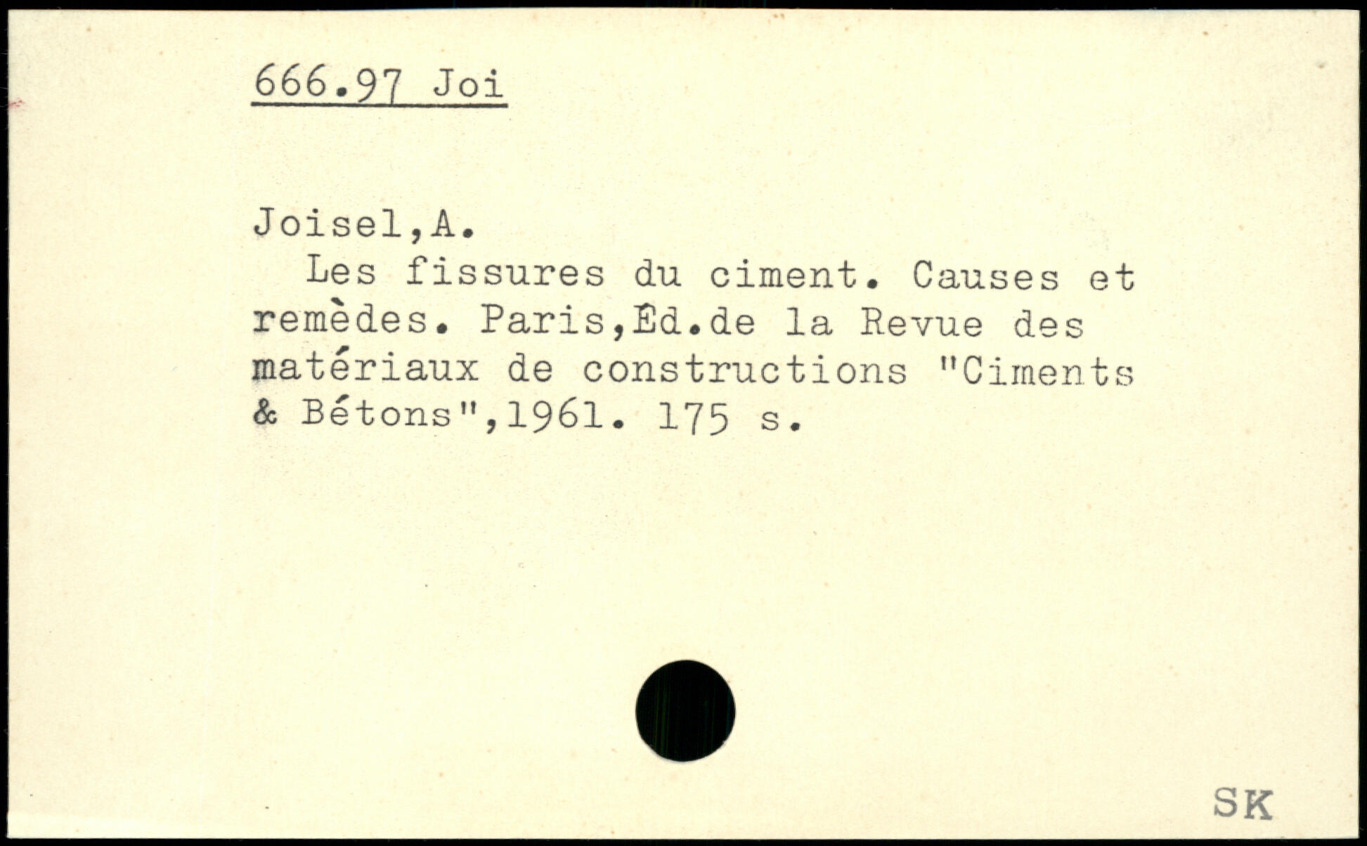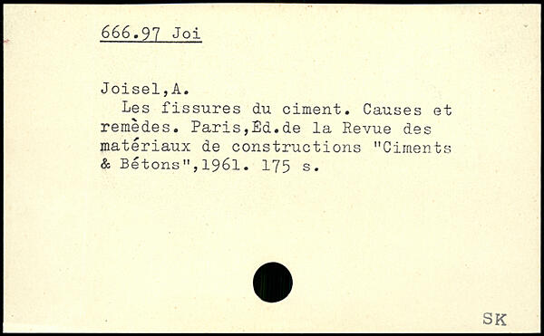 Les fissures du ciment. Causes et remèdes. Paris,Ed.de la Revue des matériaux de constructions "Ciments & Bétons",1961.