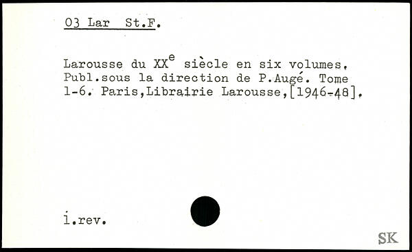 Larousse du XX siecle en six volumes, Publ.sous la direction de P.Augé. Tome 1-6. Paris,Librairie Larousse,[1946^48]f