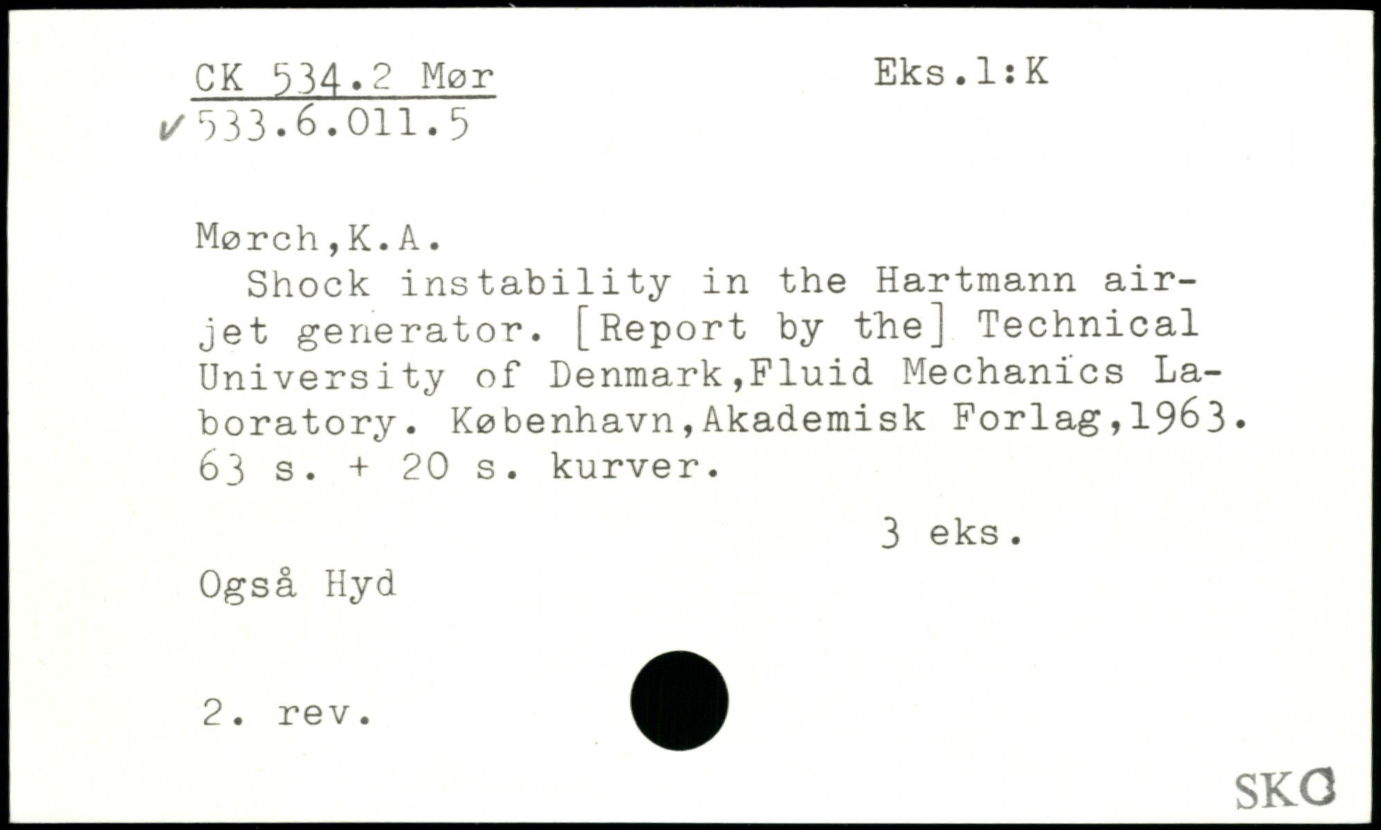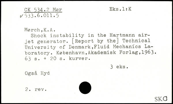 Shock instability in the Hartmann air-jet generator. [Report by the] Technical University of Denmark,Fluid Mechanics Laboratory.