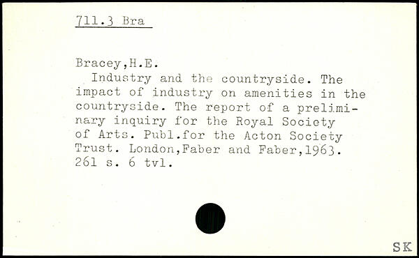 Industry and the countryside. The impact of industry on amenities in the countryside. The report of a preliminary inquiry for the Royal Society of Arts. Publ.for the Acton Society Trust.