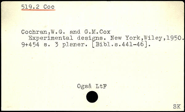 Cochran,W. G-. and G-.M.Cox Experimental designs.