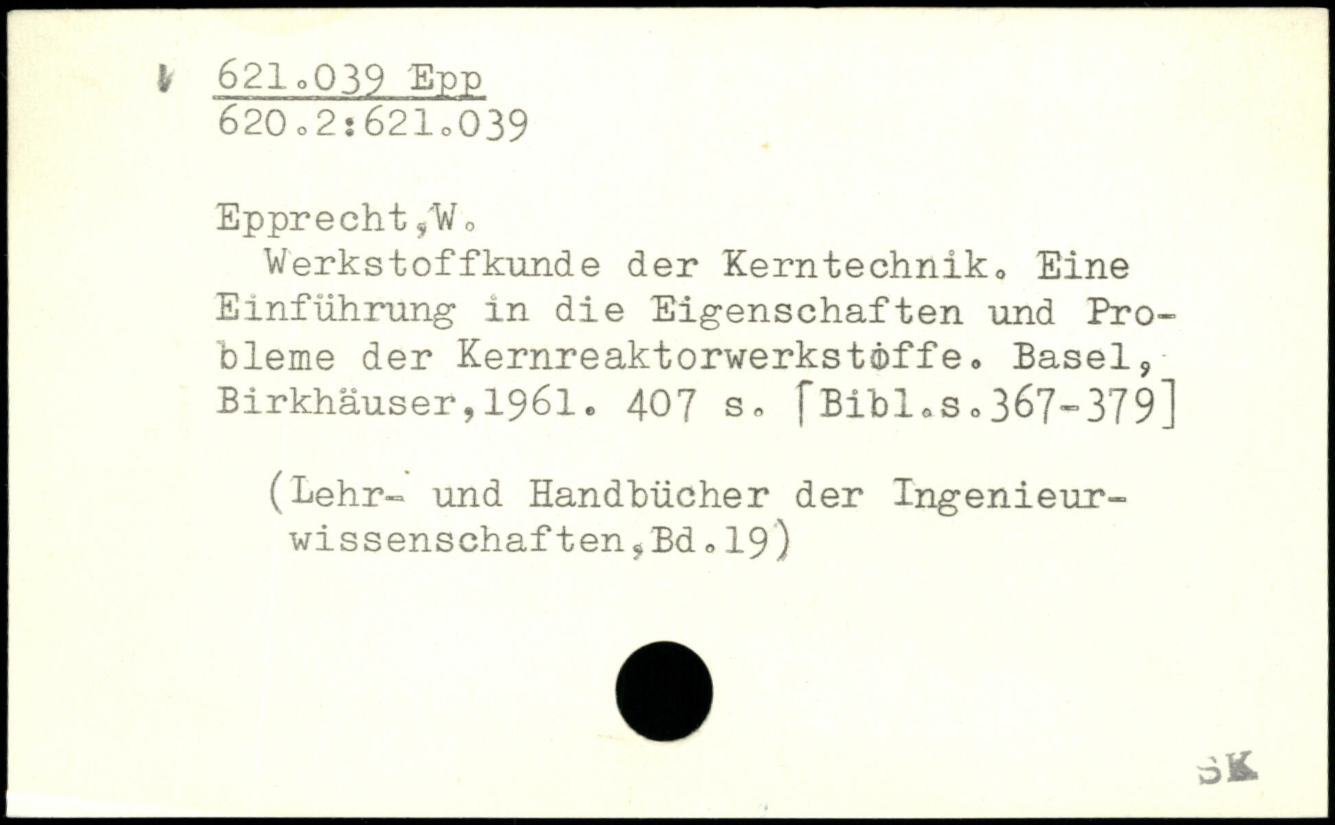 Werkstoffkunde der Kerntechnik. Eine Einführung in die Eigenschaften und Probleme der Kernreaktorwerkstöffe<, Basel9 Birkhäuser, 1961. 40? s. fBihloS , 367-379]