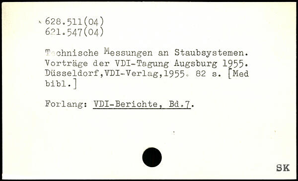T chnische Messungen an Staubsystemen. i Vorträge der VDI-Tagung Augsburg 1955