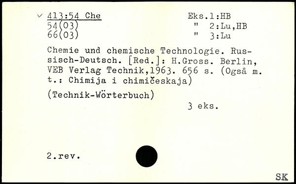 Chemie und chemische Technologie. Russisch-Deutsch. [Red.]: H.Gross.