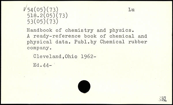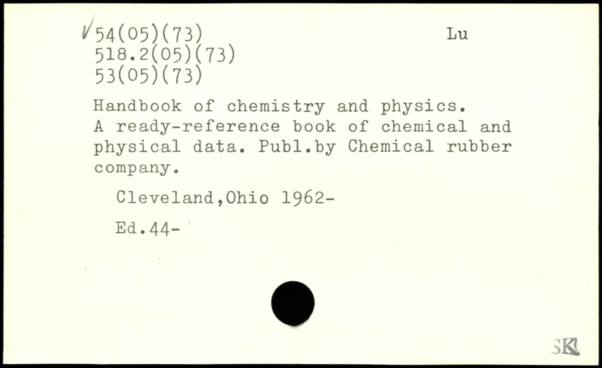 Handbook of chemistry and physics. A ready-reference book of chemical and physical data.
