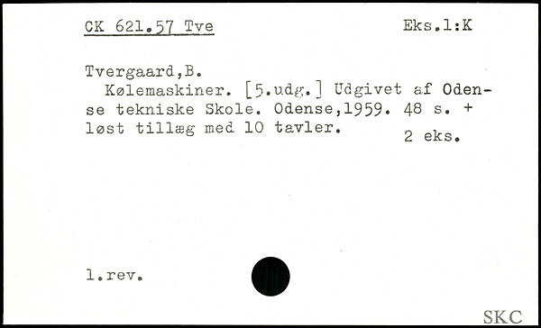 Kølemaskiner, [S.udg.] Udgivet af Odense tekniske Skole. Odense,1959