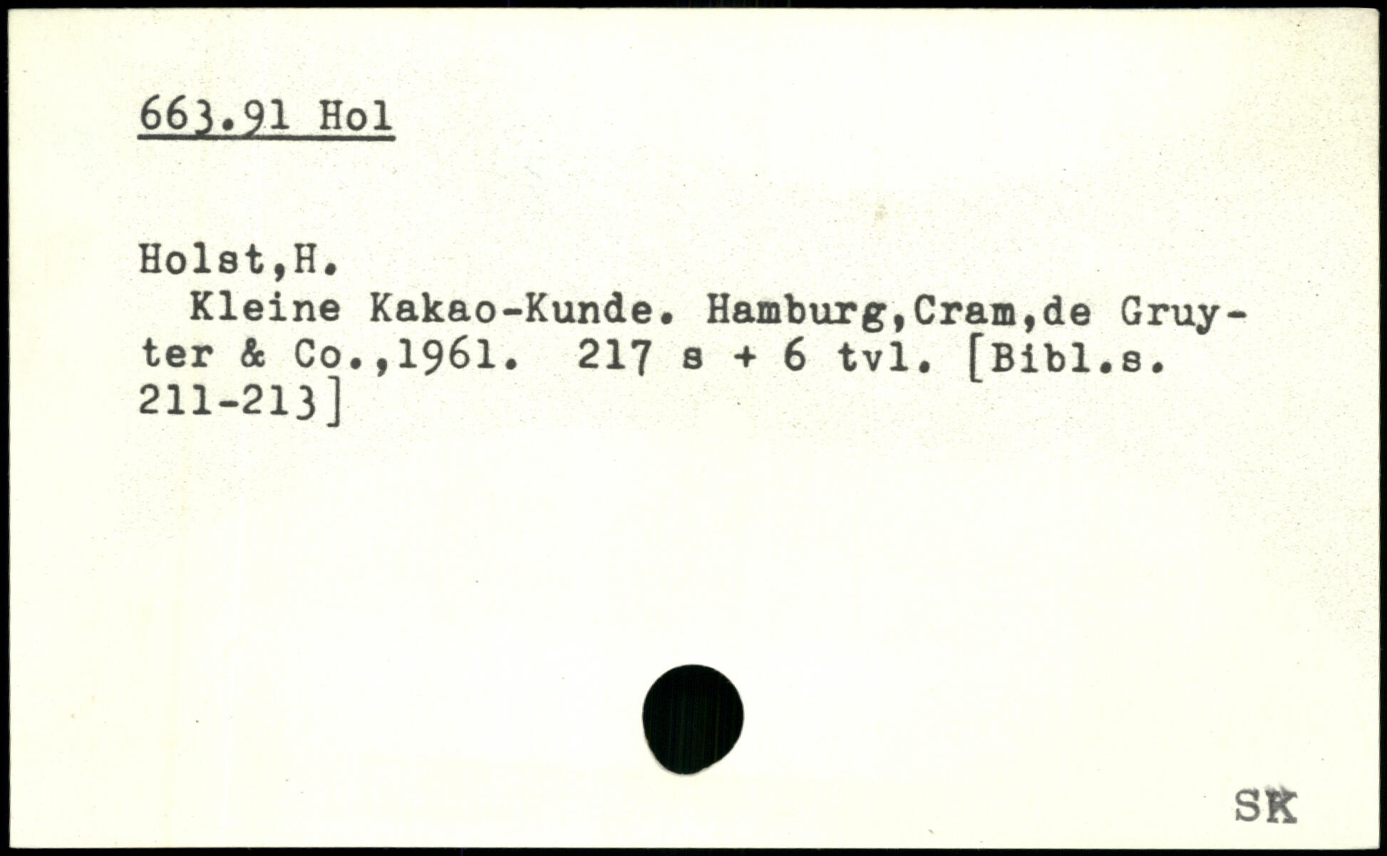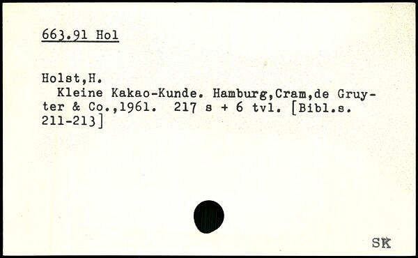 Kleine Kakao-Kunde. Hamburg,Cramtde Gruyter & Co,,1961.