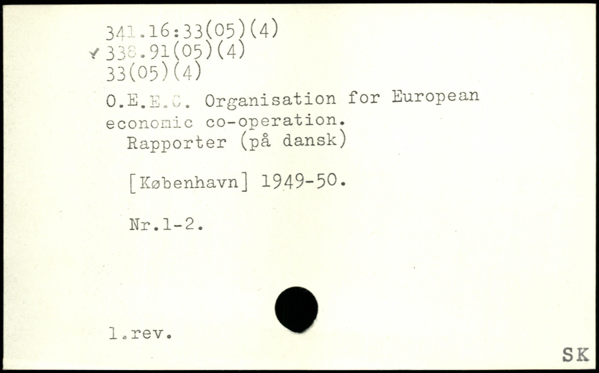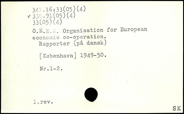 O.E.E.C. Organisation for European econonic co-operation. Rapporter (,på dansk)