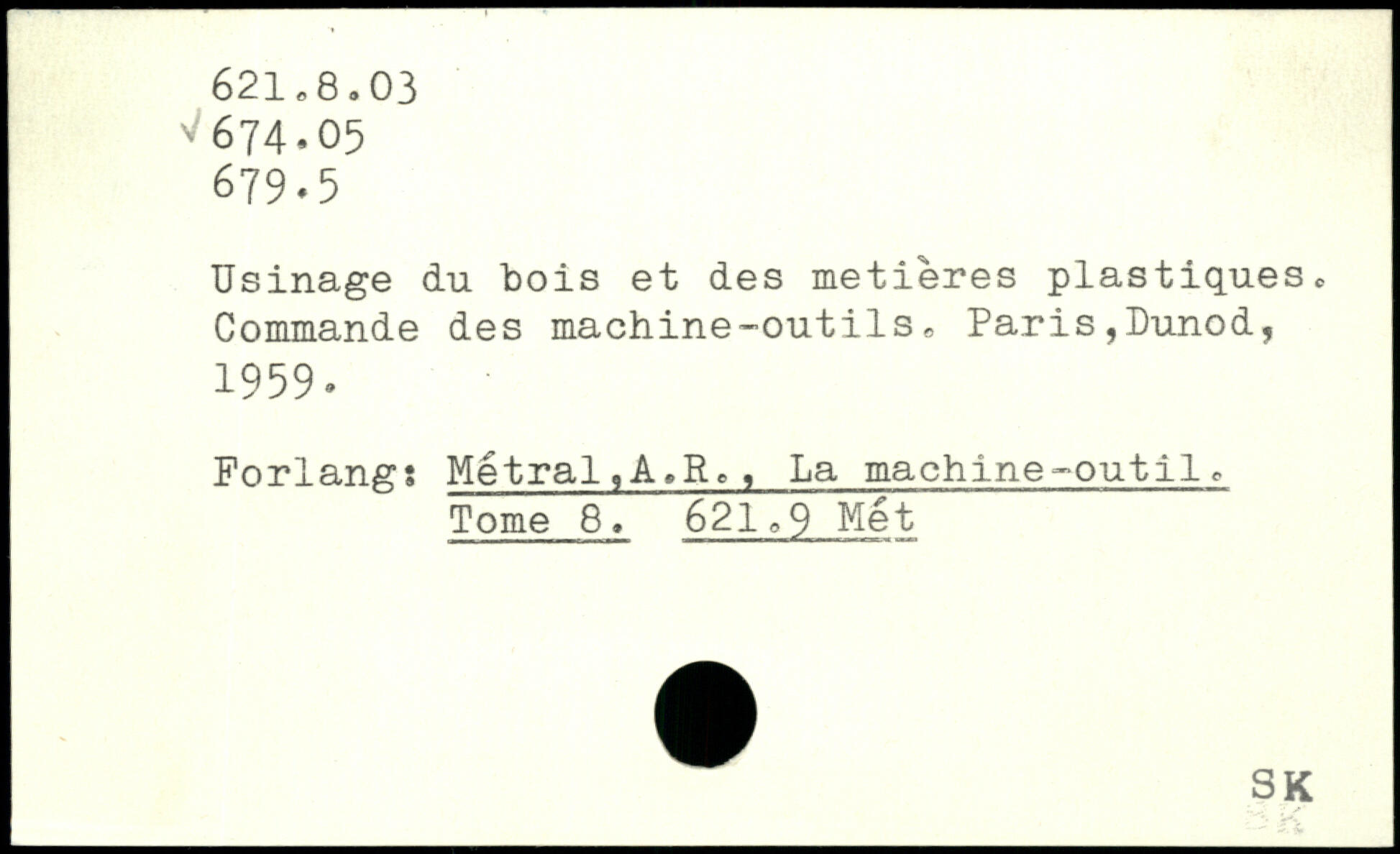Usinage du bois et des metiéres plastiques